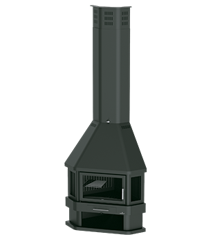 LORCA-RChimenea de rincón con tres cristales y leñero