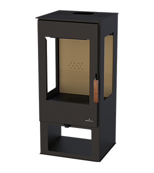ESTRELLAEstufa vertical con 3 cristales y leñero -
