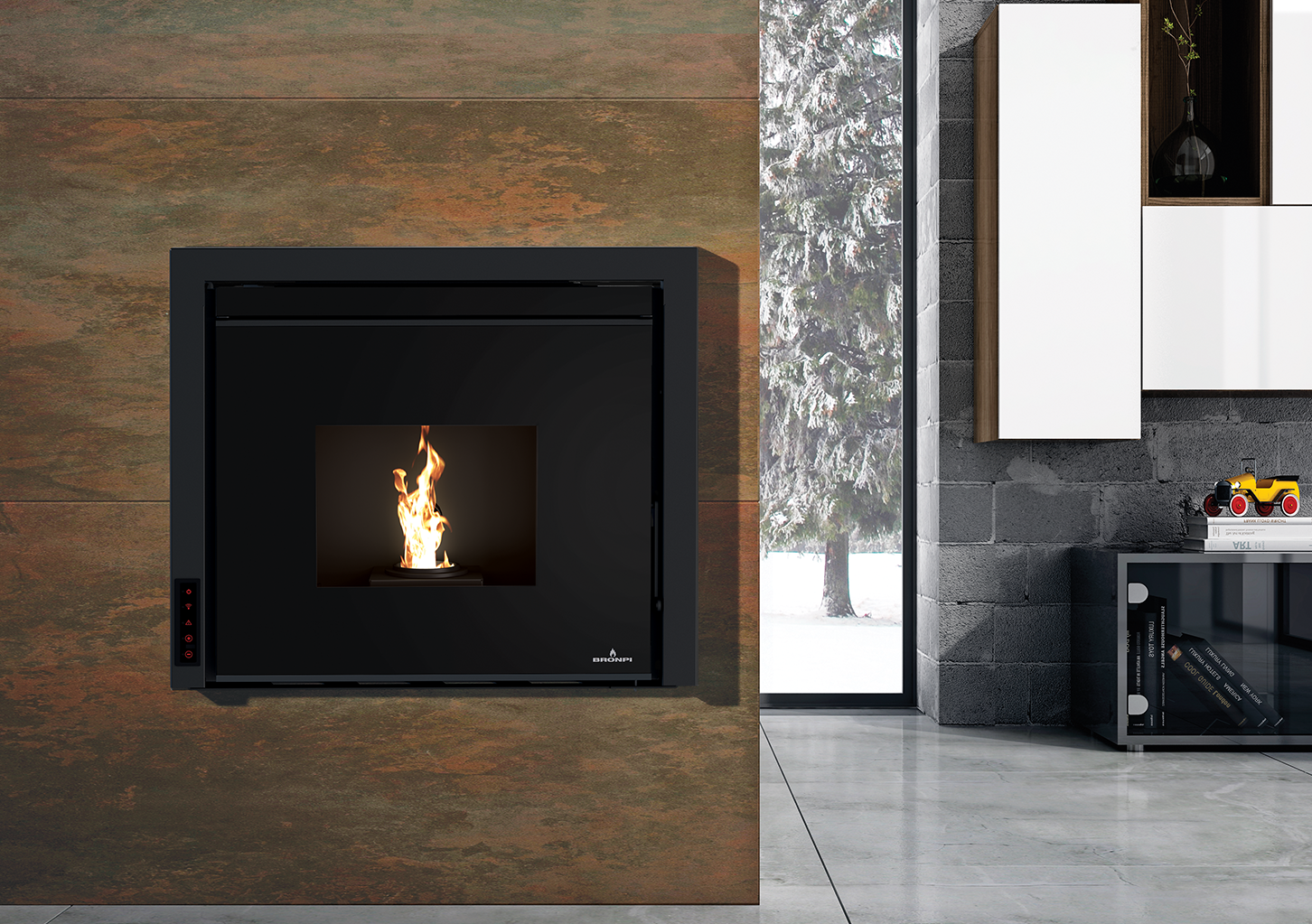 – Cajón frontal extraíble para recarga de pellet.