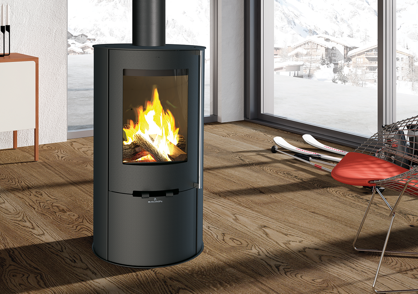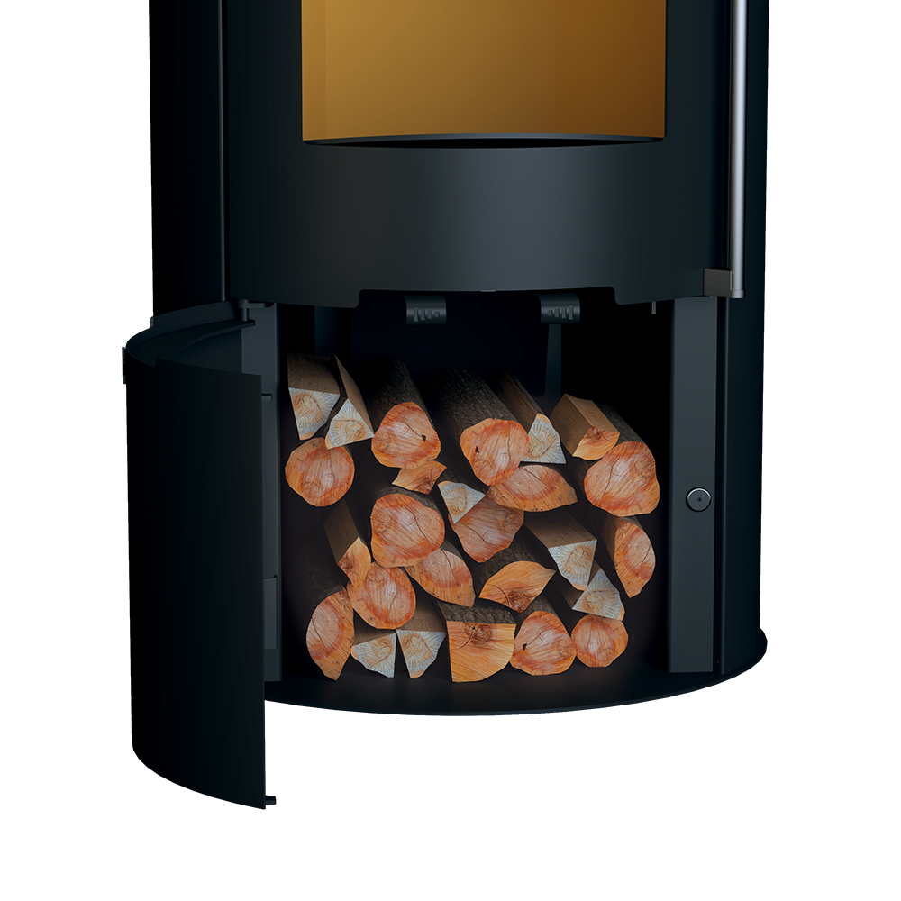 Estufa circular estanca con leñero