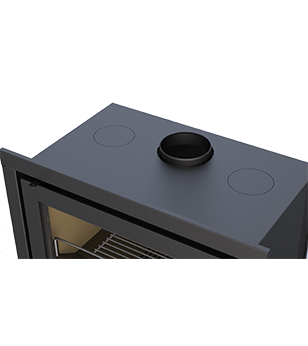 – Collarín de salida de humos desmontable. Ideal para encastre en chimeneas de obra.